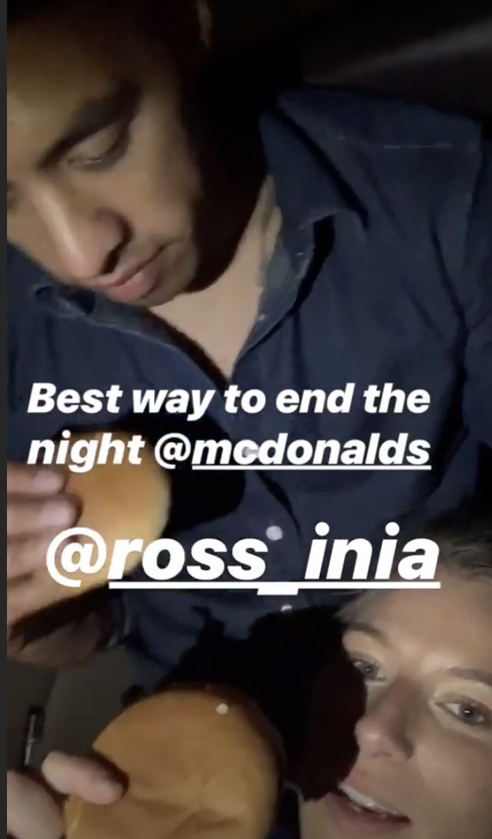 They seemed playful and informal. Inia often put his arm around Krystal and joked about her “shame cocoon.” The pair ended the evening with a little McDonald’s too.